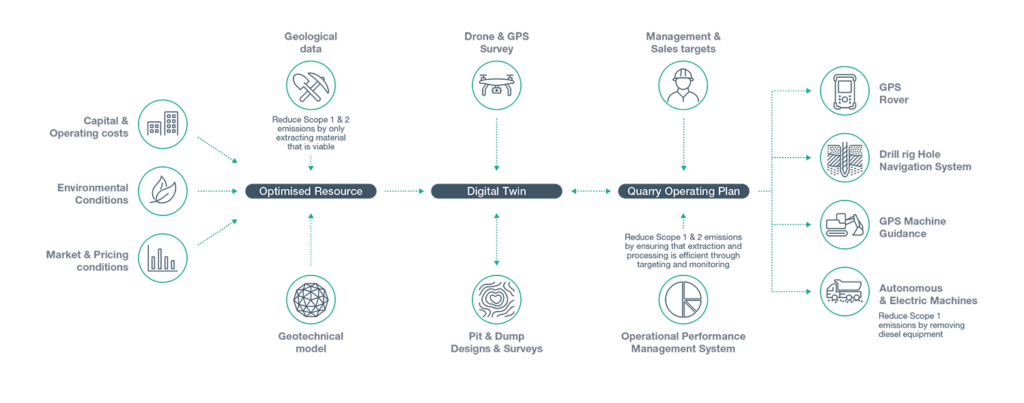 - Digital Twin of the extraction operation that provides accurate survey, geological, geotechnical and quarry design information.